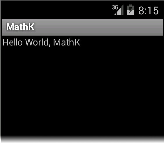 $ android create project --target 2 --name MathK --path ./MathK --activity MathK --package com.papermint_designs.mathkThis command will create a default "Hello World" application that we will modify soon. But first, let's compile it and test it.