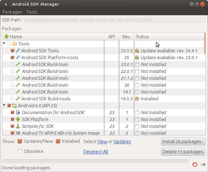 $ androidA GUI will pop-up to let you install the SDK components you like. It wil look like this: