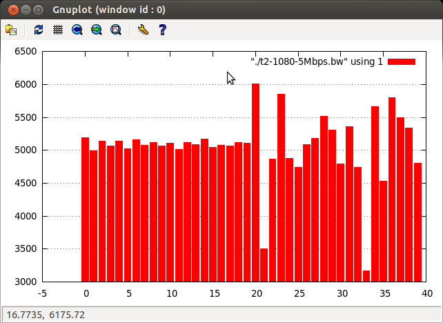 Min : 3172.670000 Max : 6007.200000 Average : 5062.105500This is a lot better. The average is pretty close to the required bandwidth and the peak bandwidth is only 1Mbps above the average (20%). Let's take a look to the graph