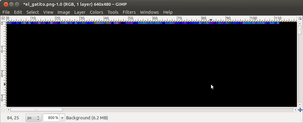 Como podéis apreciar, toda la imagen es negra, excepto una parte de la primera línea, que, vaya por dios, es justo donde nuestro mensaje clandestino está almacenado.