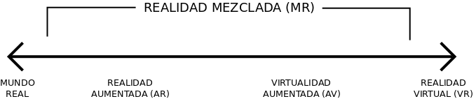 - Entre estos dos puntos hay infinitas posibilidades de mezclar la realidad con elementos virtuales generados por una máquina. A todo lo que cae en esa línea se le denomina Realidad Mixta (Mixed Reality en inglés).