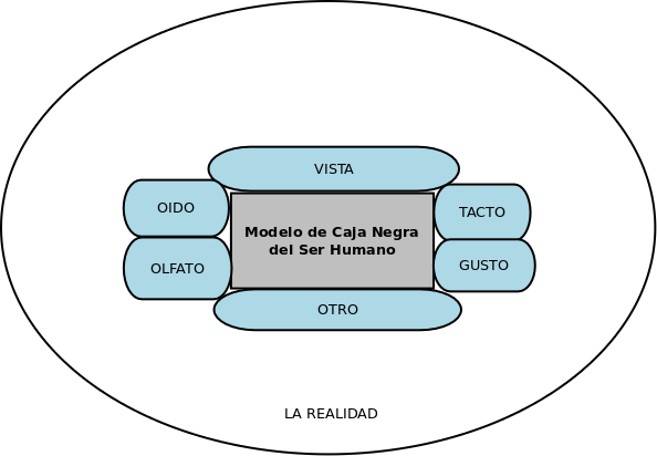 Por ahora no podemos hacer mucho más. Estamos nosotros, los seres humanos, y la realidad. Por el momento, no tenemos ni idea de como funcionan los seres humanos, así que no podemos hacer más que utilizar lo que se conoce como un modelo de Caja Negra.