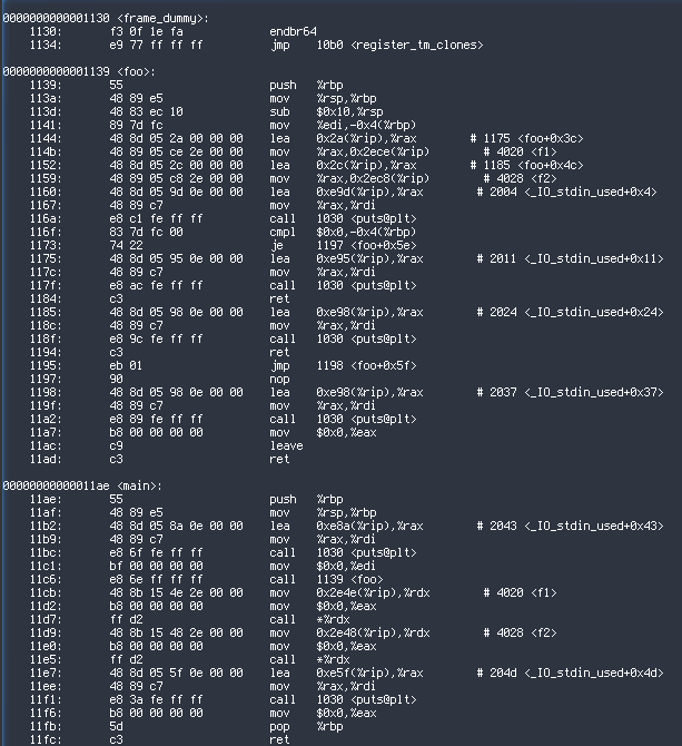 11cf: eb 01 jmp 11d2 <foo+0x99>