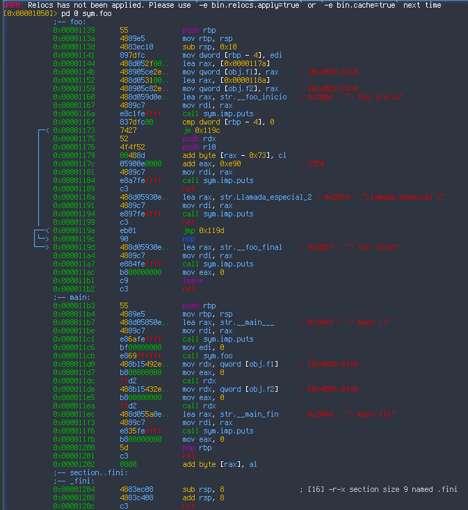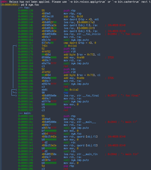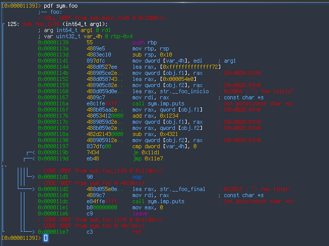 Si actualizamos el código y recompilamos, esto es lo que mostrará ahora radare.