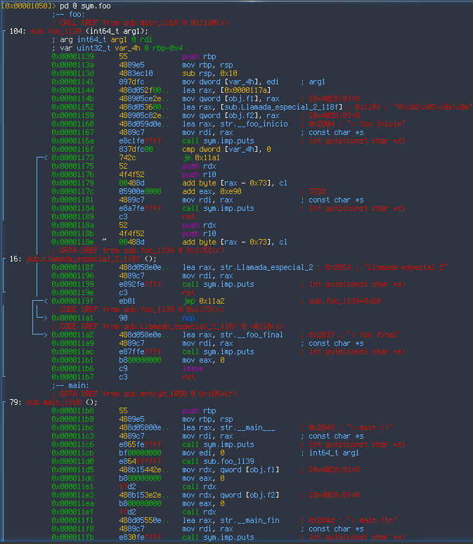 pd de radare2. Este comando hace el desensamblado de la